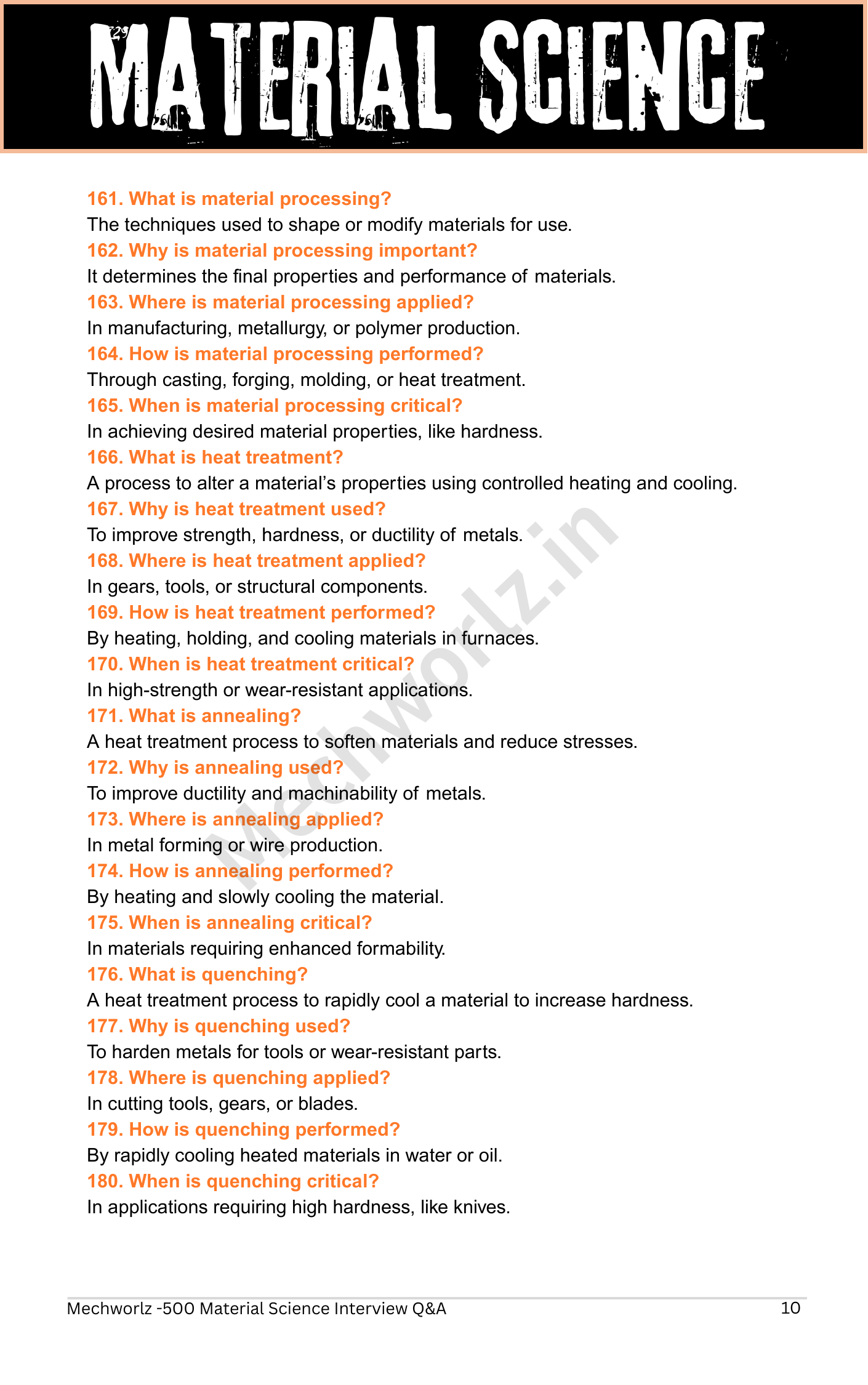 This eBook provides Material Science Interview Questions and Answers that are commonly asked in campus placements, walk-in interviews, and core manufacturing company interviews. All questions are written in a simple, clear, and interview-oriented format, making it ideal for quick learning and last-minute revision.
