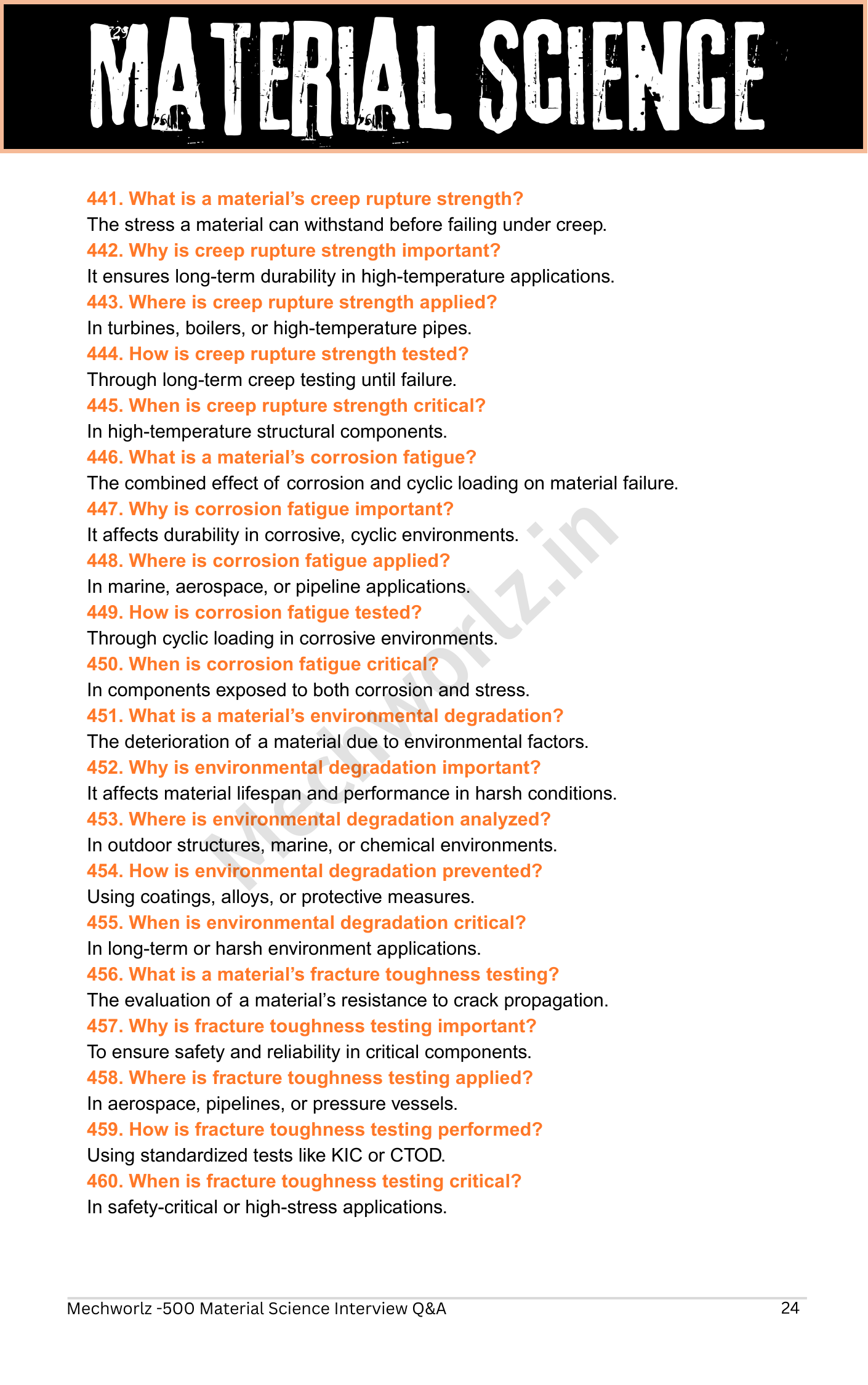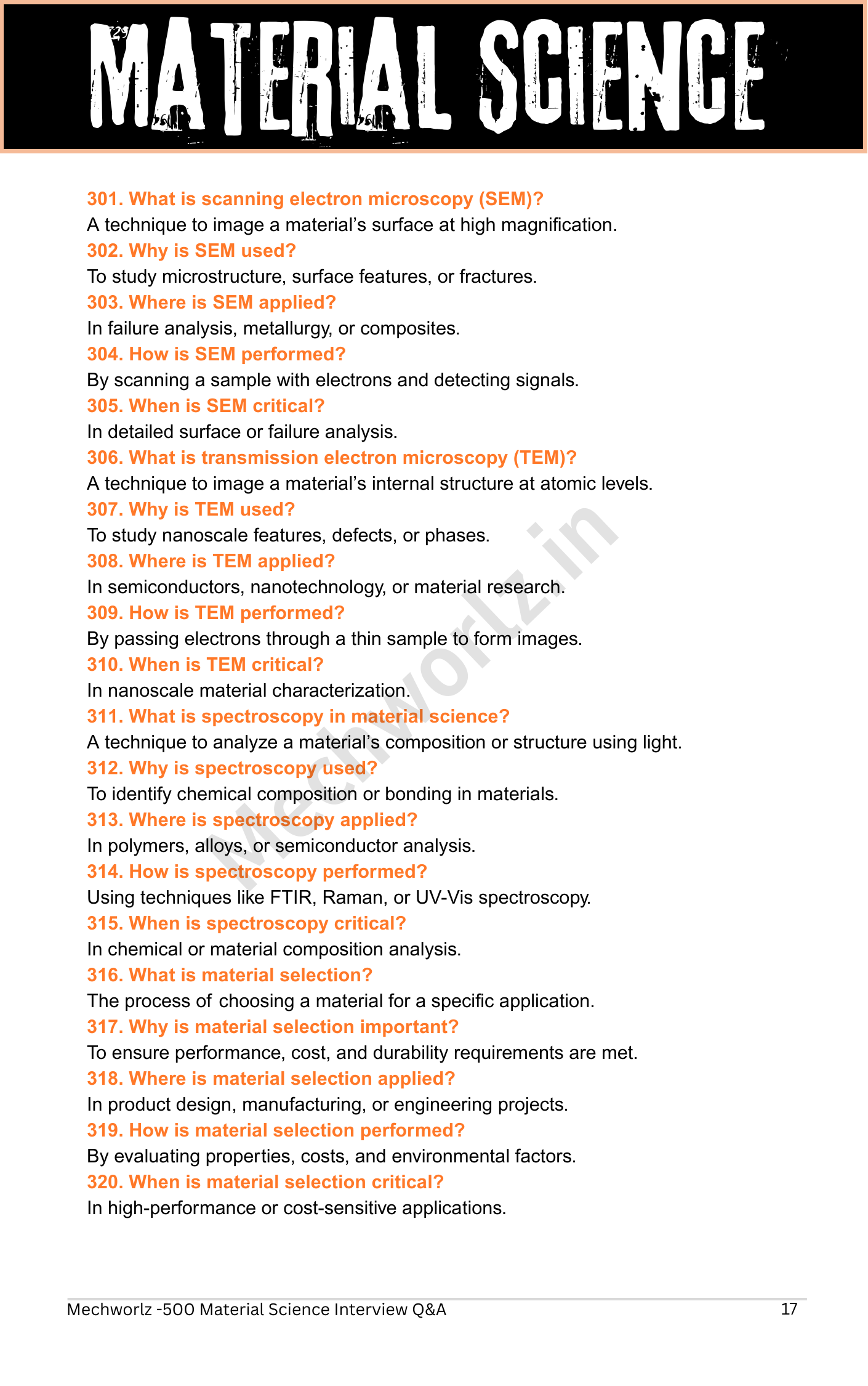 The content includes a wide range of Material Science Interview Questions and Answers based on real interview patterns, covering: